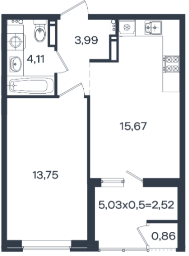 Продается однокомнатная новостройка, 40.9 кв.м., 10/18 эт