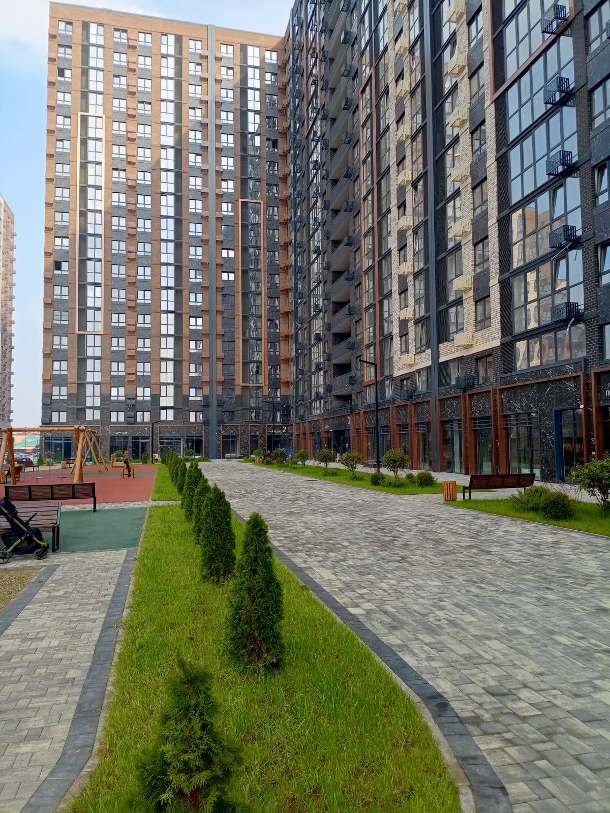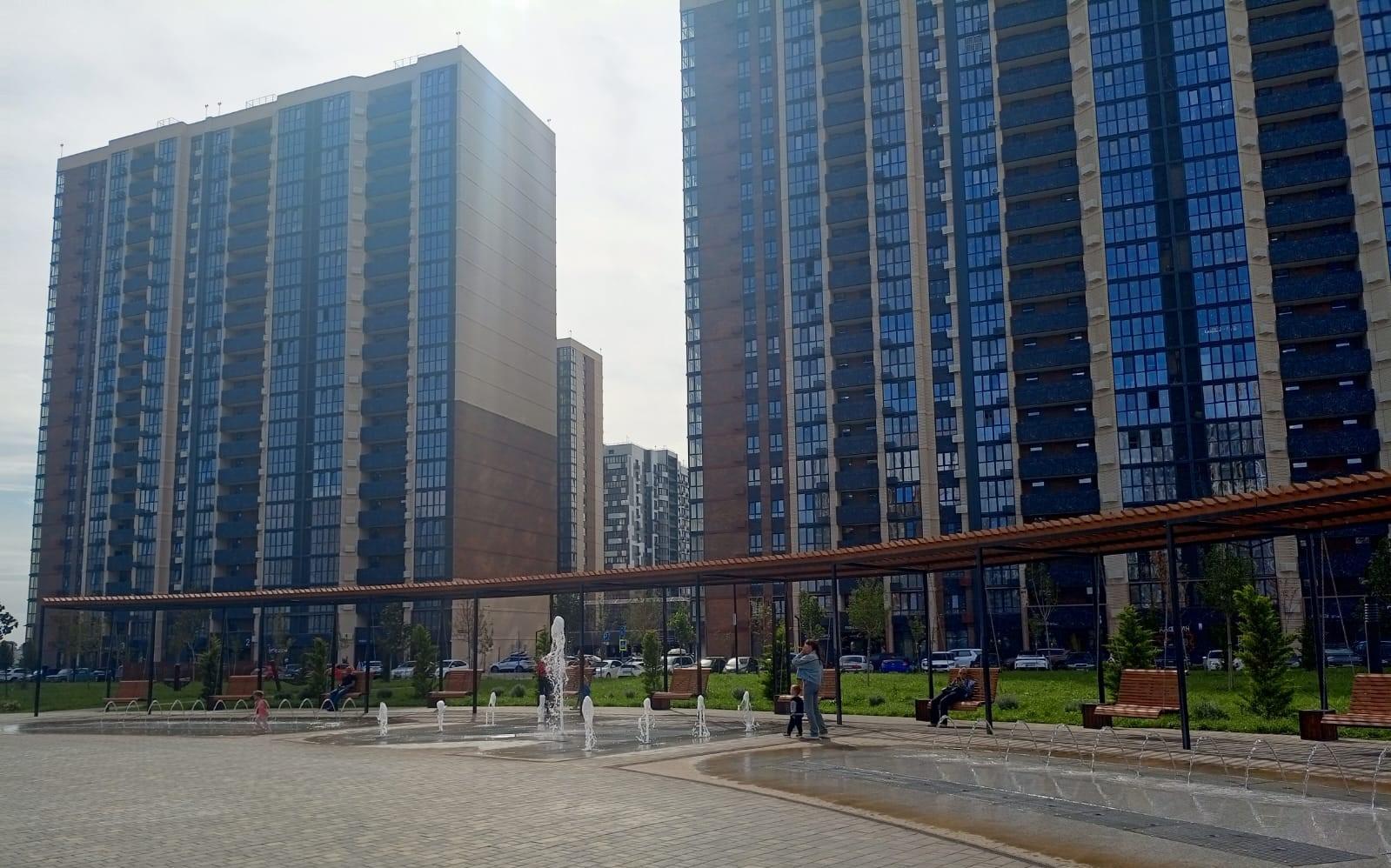 На первом этаже — коммерческие помещения для повседневных покупок, а также есть зона барбекю с мангалами и беседками.