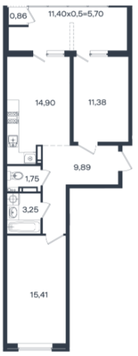 | Площадь кухни, кв.м. | 14.9 |
