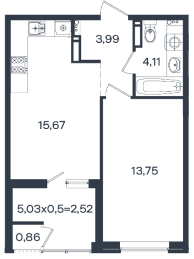 Продается однокомнатная новостройка, 40.9 кв.м., 11/18 эт