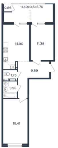 Продается 2-х комн. новостройка, 63.14 кв.м., 9/18 эт