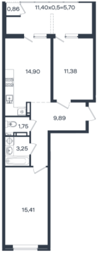 | Площадь кухни, кв.м. | 14.9 |