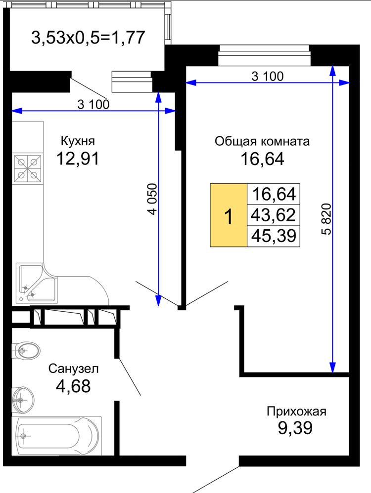 | Площадь, кв.м. | 45.39 |