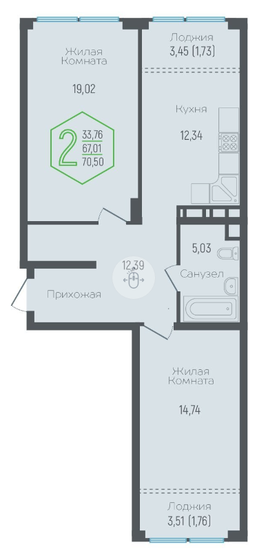 Продается 2-х комн. новостройка, 68.3 кв.м., 11/24 эт