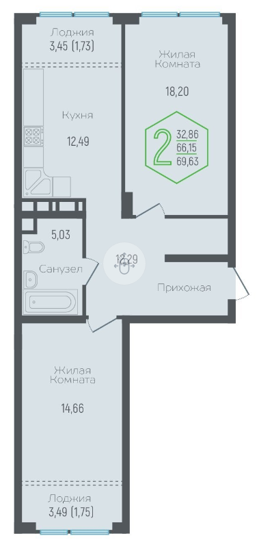 | Площадь кухни, кв.м. | 12.49 |