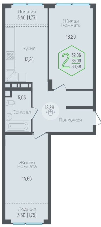Продается 2-х комн. новостройка, 67.1 кв.м., 17/24 эт
