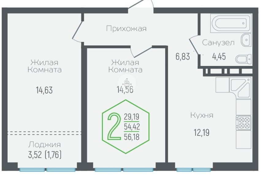 Продается 2-х комн. новостройка, 55.5 кв.м., 22/24 эт