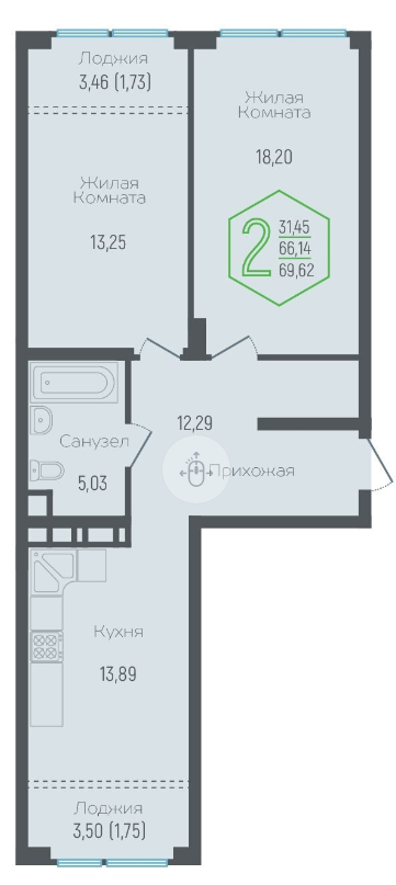 Продается 2-х комн. новостройка, 67.4 кв.м., 11/16 эт