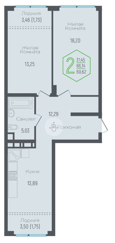 Продается 2-х комн. новостройка, 67.6 кв.м., 14/16 эт