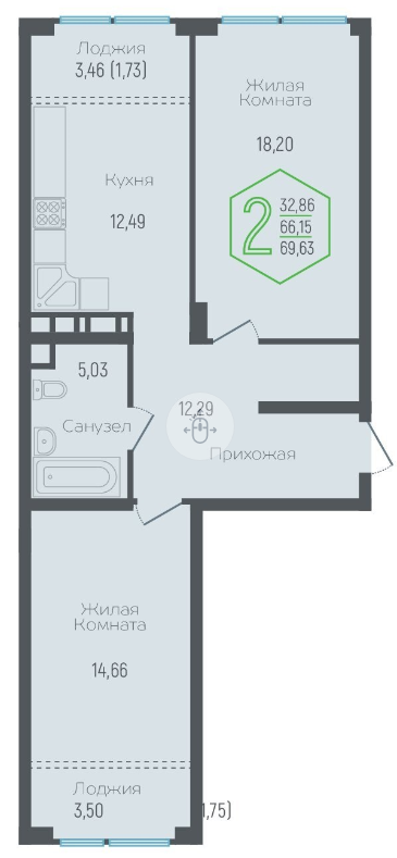 Продается 2-х комн. новостройка, 67.7 кв.м., 12/16 эт
