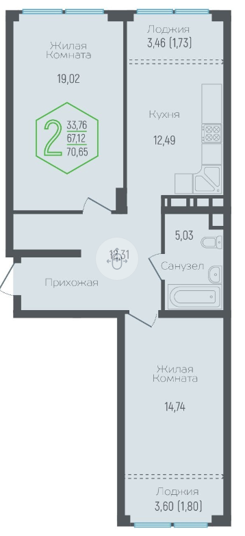 Продается 2-х комн. новостройка, 68.4 кв.м., 6/16 эт