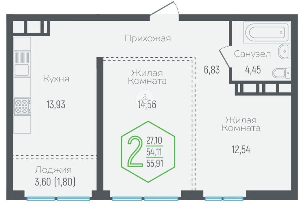 | Площадь, кв.м. | 55.5 |