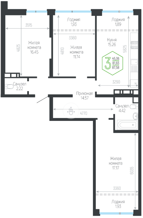 | Площадь кухни, кв.м. | 15.26 |