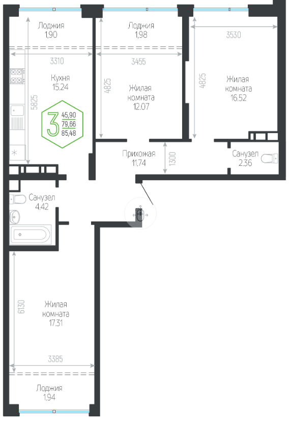 | Площадь кухни, кв.м. | 15.24 |