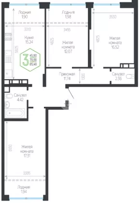 | Комнат в квартире | 3 |