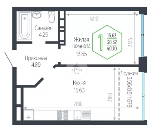 | Площадь, кв.м. | 40.1 |