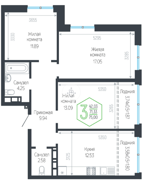 Продается 3-х комн. новостройка, 75 кв.м., 12/16 эт