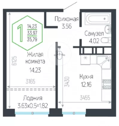 Продается однокомнатная новостройка, 35.79 кв.м., 18/24 эт