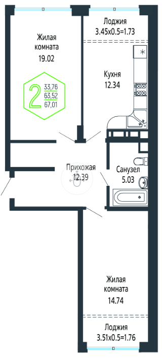 Продается 2-х комн. новостройка, 67.29 кв.м., 8/24 эт