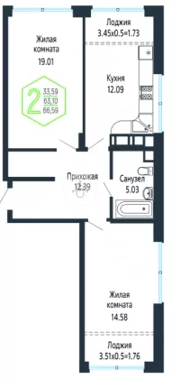 Продается 2-х комн. новостройка, 67.04 кв.м., 18/24 эт