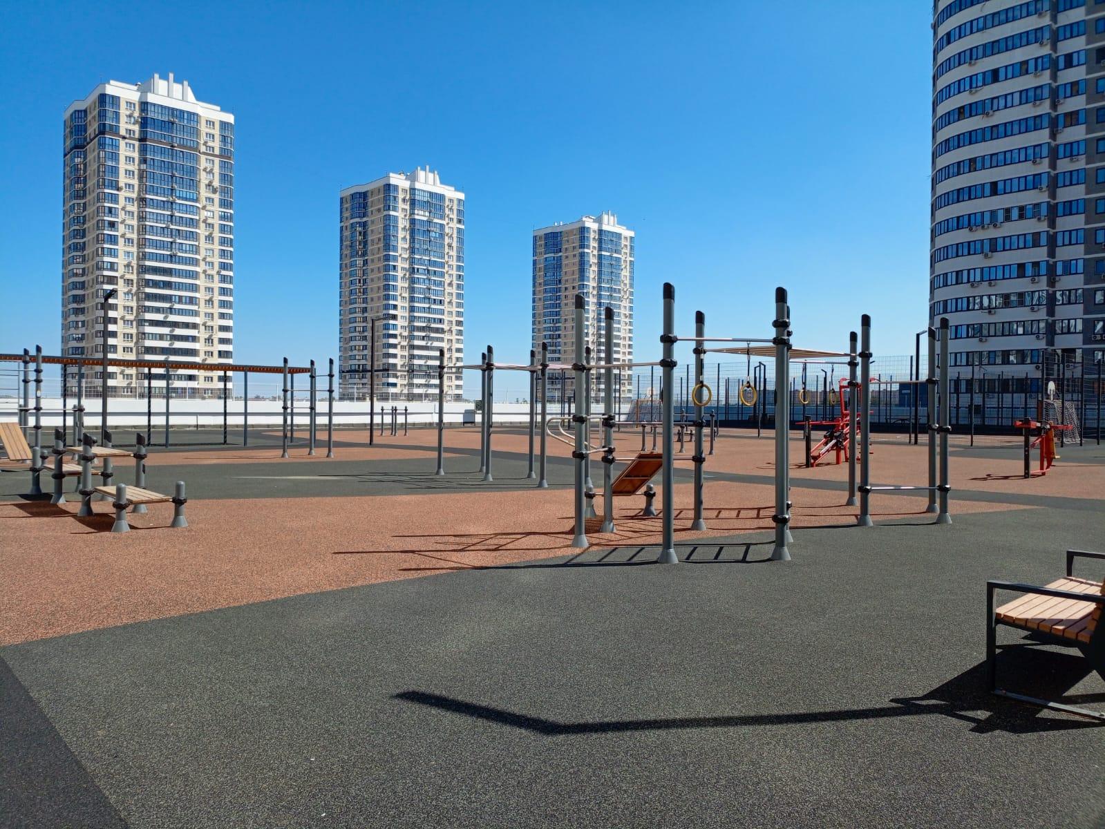 Детские площадки, уличные тренажёры, зоны для йоги и растяжки, площадка для баскетбола, теннисный корт, воркаут- комплекс для уличной гимнастики!