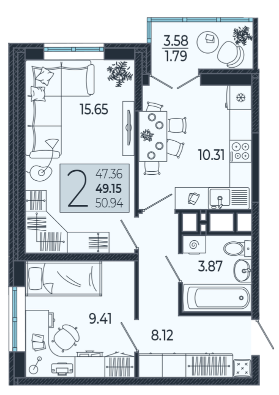 | Площадь, кв.м. | 49.5 |