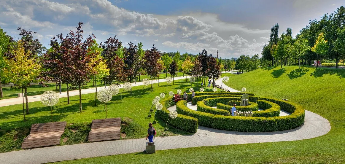 Уличные тренажёры, зоны для йоги и растяжки, теннисный корт, воркаут- комплекс для уличной гимнастики, детские площадки, площадка для баскетбола!