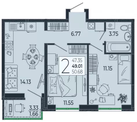 | Площадь, кв.м. | 49.05 |