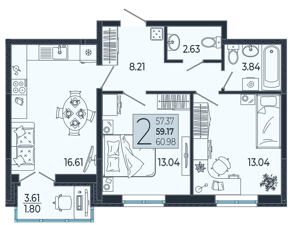 | Площадь, кв.м. | 59.25 |