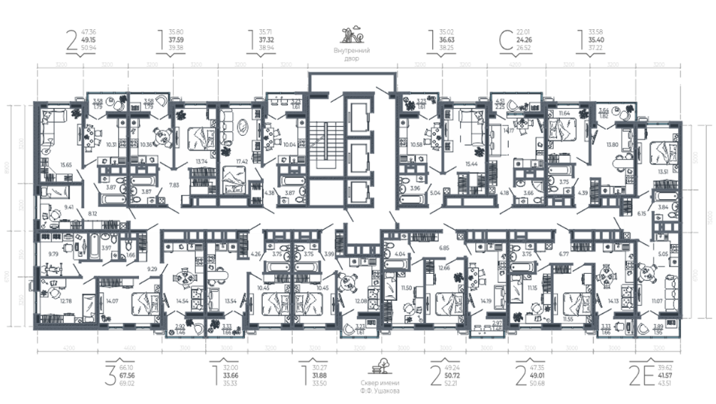 Двор без машин! Подземная и наземная автостоянка с лифтом на этаж, для гостей просторные парковки расположены за домами.