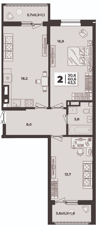 Продается 2-х комн. новостройка, 63.5 кв.м., 6/9 эт
