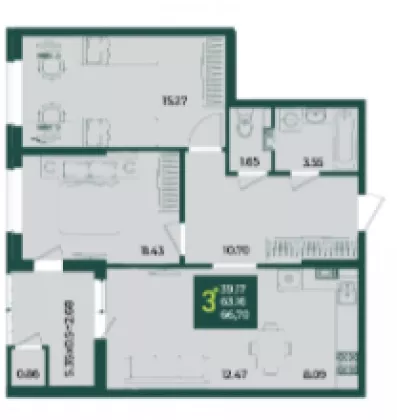 Продается 3-х комн. новостройка, 66.7 кв.м., 4/18 эт