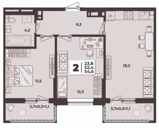 Продается 2-х комн. новостройка, 54.6 кв.м., 2/9 эт