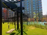 Придомовая территория с ландшафтным дизайном разделена местами для отдыха, безопасные детские площадки с тренажерами, зонами воркаута с тренажерами и турниками, баскетбольная арт- площадка.