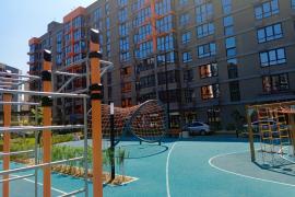 Придомовая территория с ландшафтным дизайном разделена местами для отдыха, безопасные детские площадки с тренажерами, зонами воркаута с тренажерами и турниками, баскетбольная арт- площадка.