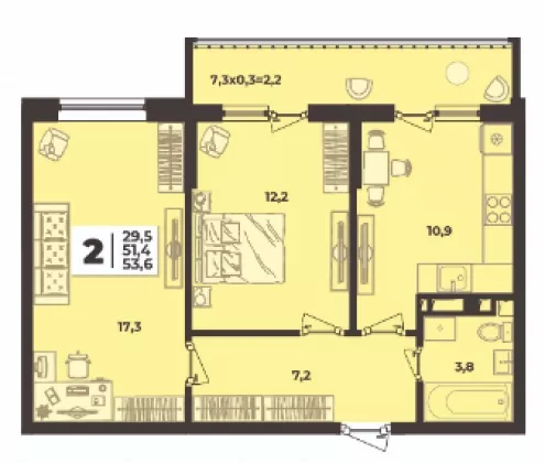 | Площадь, кв.м. | 53.6 |
