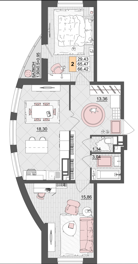 Продается 2-х комн. новостройка, 66.42 кв.м., 4/19 эт