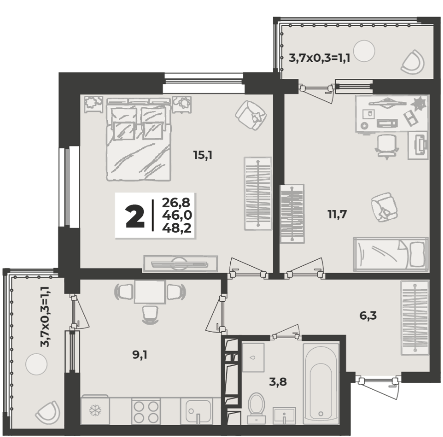 | Жилая площадь | 26.8 |