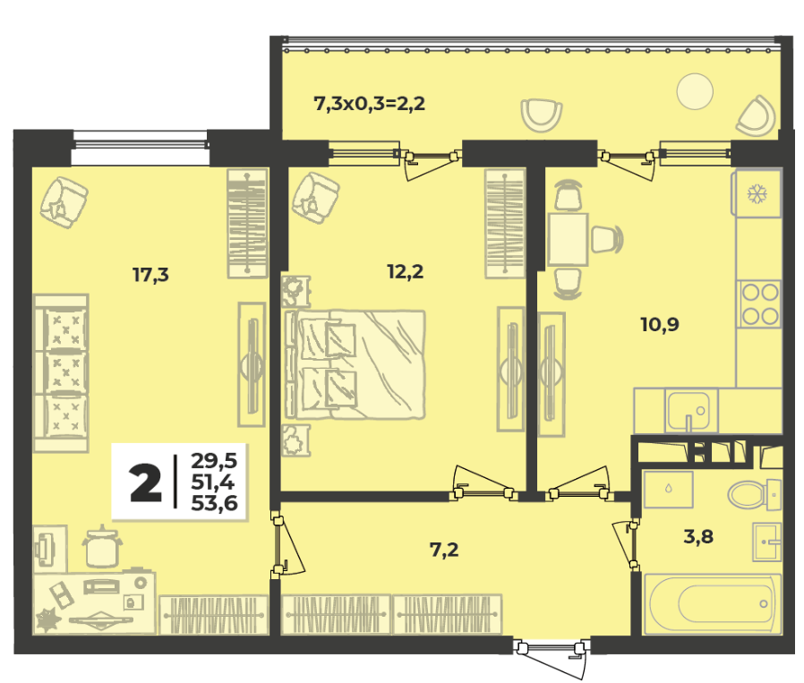 Продается 2-х комн. новостройка, 53.6 кв.м., 9/9 эт