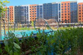 Придомовая территория с ландшафтным дизайном разделена на места для отдыха, баскетбольная арт- площадка, безопасные детские площадки с тренажерами, зонами воркаута с тренажерами и турниками.