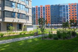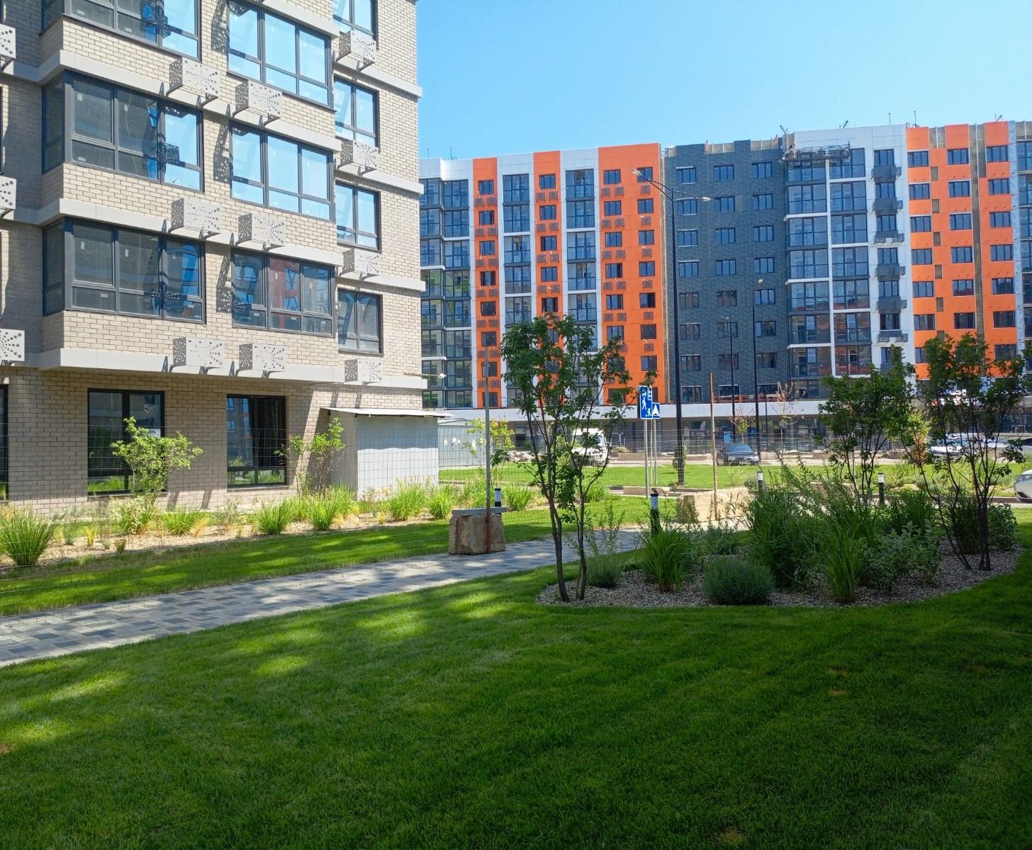 Придомовая территория с ландшафтным дизайном разделена на места для отдыха, баскетбольная арт- площадка, безопасные детские площадки с тренажерами, зонами воркаута с тренажерами и турниками.