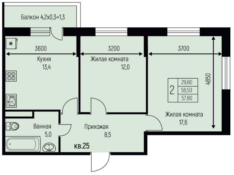 | Площадь, кв.м. | 57.8 |
