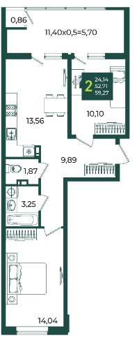 Продается 2-х комн. новостройка, 59.03 кв.м., 12/18 эт