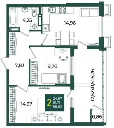 Продается 2-х комн. новостройка, 58.03 кв.м., 9/18 эт