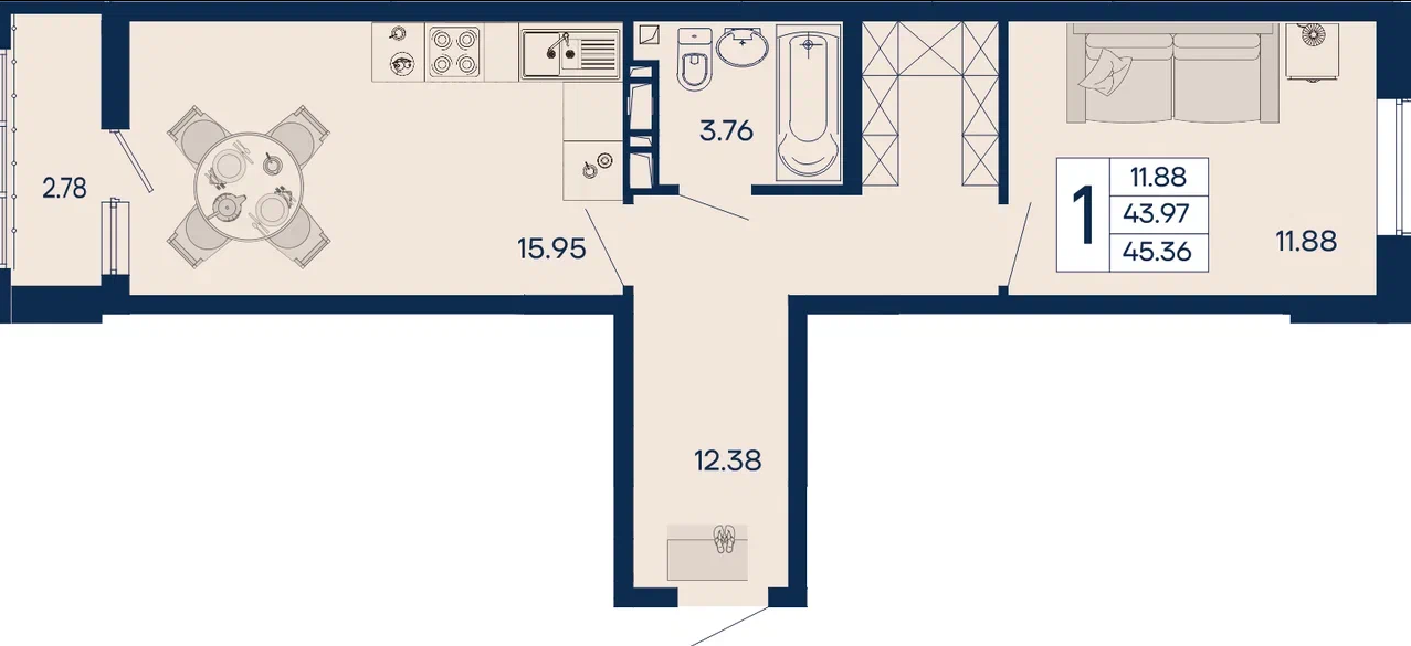 Однокомнатная квартира с большой кухней- гостиной 15,95! Лоджия с витражным остеклением!