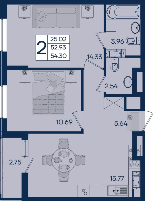Продается 2-х комн. новостройка, 54.3 кв.м., 12/18 эт