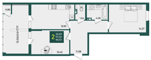 Продается 2-х комн. новостройка, 66.55 кв.м., 3/18 эт
