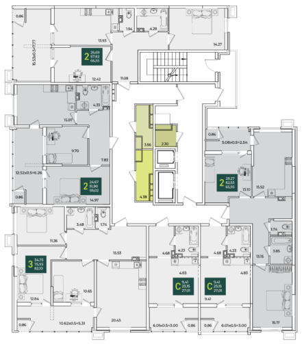На первом этаже коммерческие помещения, что позволит жильцам, не выходя из комплекса совершать покупки.