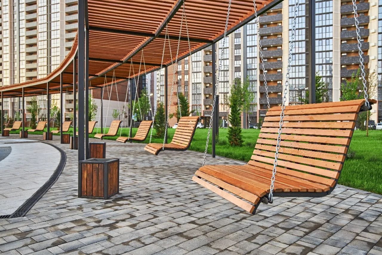 - Прогулочные аллеи, станции зарядки телефонов