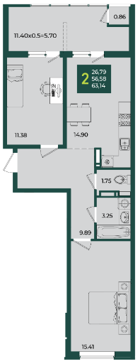 | Площадь, кв.м. | 63.14 |